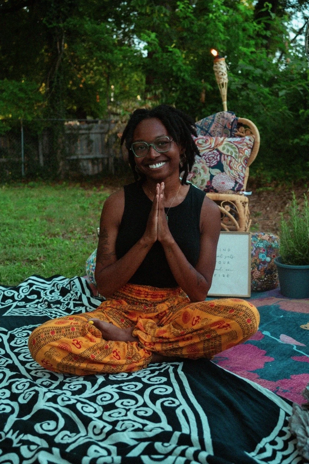 In 2020, I completed my first 200HR Yoga Teacher Training, and in 2022, I committed to deepening my practice with a second training. I am currently continuing my studies through a 300HR YTT. Along this journey, I have been shaped by the wisdom and guidance of incredible teachers: Kennae Miller (Transformation Yoga), Bethany Louise (Pranayama House), Victoria Martinez (Chakra Flow University), Shanna Small (Shanna Small Yoga), and Susanna Barkataki (Ignite Yoga & Wellness Institute). Each of them has offered me tools, insights, ad ways of seeing that continue to ripple through my teaching and my life. I encourage you to check out their offerings, as their work continues to inspire me daily. They have shown me not only the physical practice of yoga, but also its roots, philosophy, and the responsibility of carrying it forward with reverence.